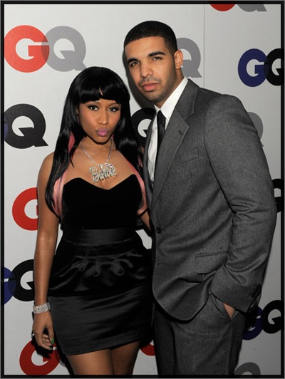Here are Drake and Nicki Minaj (who looks very nice as well, minus the pink weave add-on) at GQ’s Men of The Year party in New York.