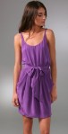 This scoop-neck silk dress features a self-belt tie and box pleats at the waist. Draped slant pockets at hip and gathered elastic banding at back. 1/2″ straps. Lined.