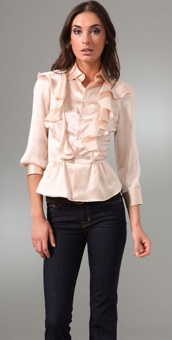 Call me old fashion, but I think this shirt is adorable. The ruffles and silk blend are fetch.