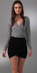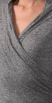 This jersey top features a shawl collar and a draped crossover V neck. Long sleeves. Semi-sheer.