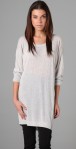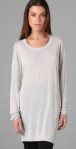This crew-neck knit top features a strap behind the neck and a twist detail at the cutout back. Ribbed banding at edges. Long sleeves. Semi-sheer.