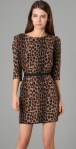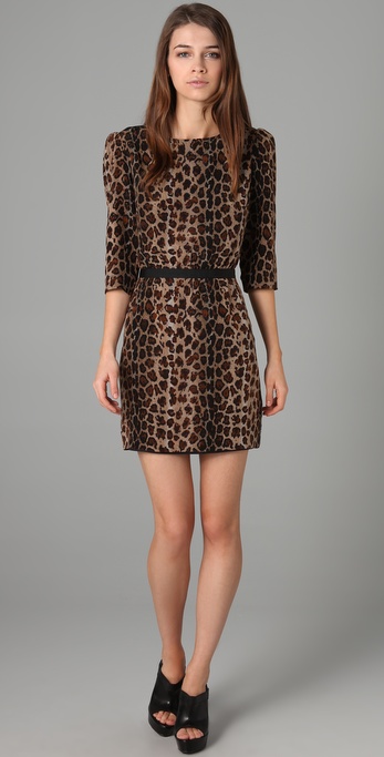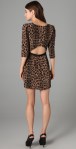 This wide-neck leopard-print silk dress features contrast grosgrain banding at the waist and 2 hidden zips at the cutout back. Ruching at shoulders. Elbow-length sleeves. Lined.