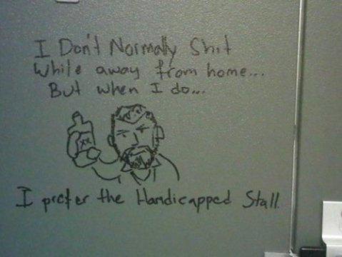 I’ve seen some really interesting bathroom graffiti in my day…but if I would have died of laughter if I saw this mug!