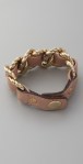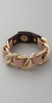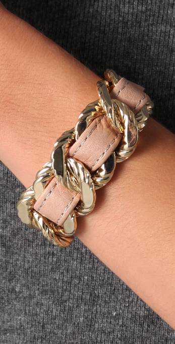 This leather bracelet features textured curb-chain link accents. Snap clasp.
