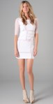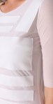 This wide-neck dress features mid-weight jersey appliqués and unfinished cuffs. Elbow-length sleeves. Lined. Semi-sheer.