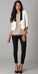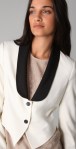 This wool blazer features contrast lapels and a 2-button closure. Pointed, asymmetrical hem. 4-button cuffs at long sleeves. Lined.