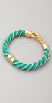 This hinged, gold-plated bracelet features a loop detail at the twisted, enameled band. Magnetic closure.