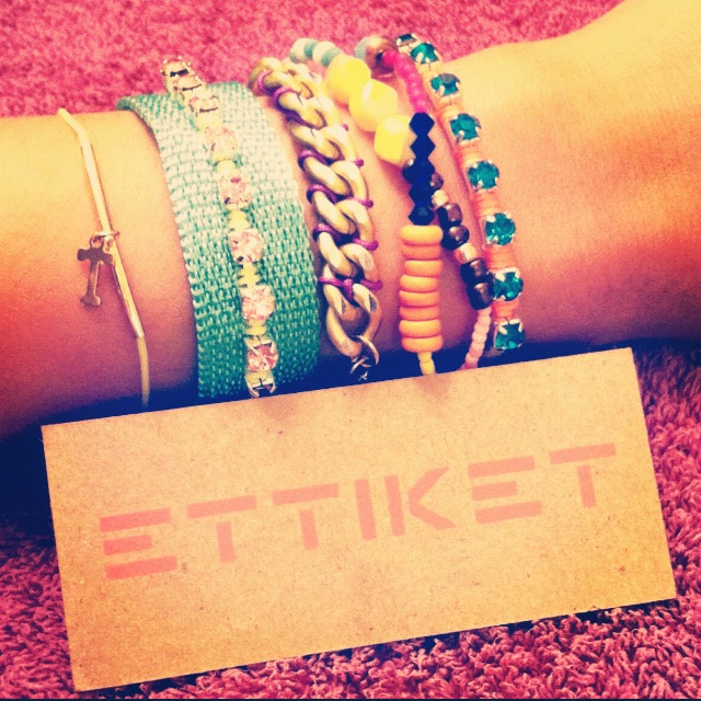 I had the pleasure of being gifted with an awesome arm party invitation from designer Kristina E. Taylor, founder of Ettiket! Each bracelet is hand crafted with eclectic sophistication. Make a statement with your accessories. Party time!