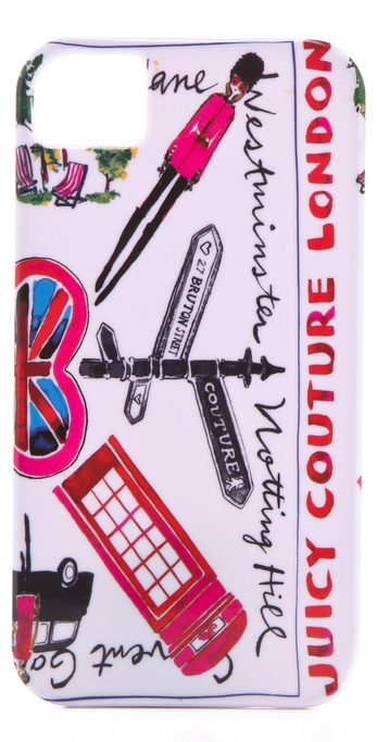 This protective plastic iPhone case is covered with playful illustrations inspired by London. Formfitting construction and cutouts for buttons, camera, and cords.