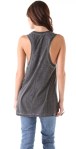 A shadow heart and faded ‘USA’ lettering lend vintage appeal to this burnout jersey tank. The long and loose fit is accentuated by a curved, uneven hem, and the oversized arm openings and racer back make this a fun layering piece.