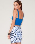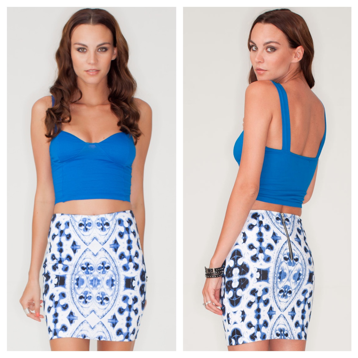I absolutely love the print and colorway on this skirt. They had a dress using this same print, which I thought was a bit much. Pair with a cute crop top for a fun and casual look. Going out, I would suggest a plain solid tank and tons of accessories.