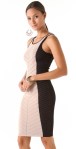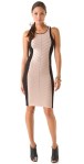 Colorblock panels and contrast chevron stripes make graphic patterns over this figure-hugging knit dress. Thin straps. Double-layered.
