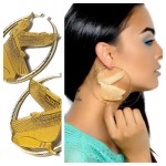Cues Rihanna’s boob tattoo.. but not really. Check out these earrings from designer Melody Ehsani, featuring the Egyptian goddess Isis, laser etched on mirrored acrylic with gold plated hoop earring.