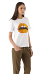 Luscious lips glitter seductively from the front of this artfully boxy Marcus Lupfer tee. Jersey and cotton blend.
