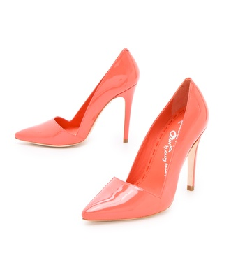 Famed chic brand alice + olivia has really been capitalizing on the whole symmetric pump trend. I’m here for it. I own a pair. These in particular are special because they are patent leather and featured in the cutest orange hue ever.