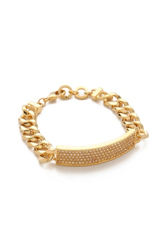 The classic ID bracelet gets a sparkling update with a crystal-covered plate. Lobster-claw clasp.ย Available here