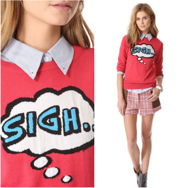 In preparation for the Fall (and the sweep of Pop Art trends), check out this “Sigh” long sleeve sweater from Glamorous.