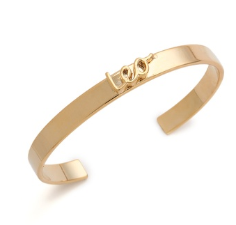 Zodiac lettering adds a personalized touch to this gold plated slim cuff.