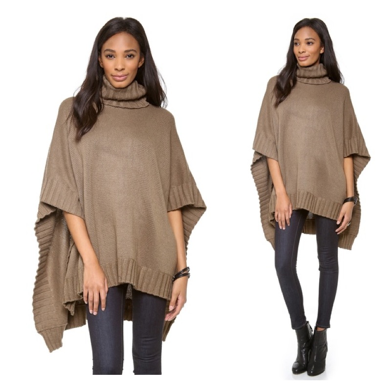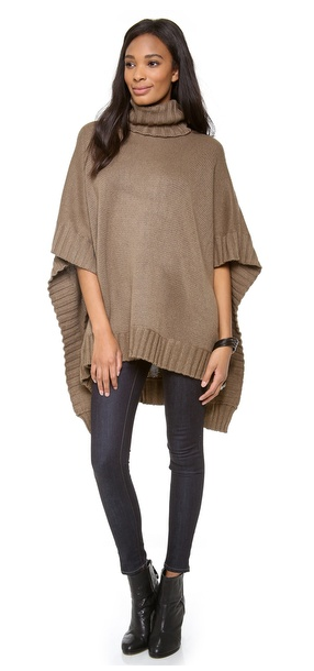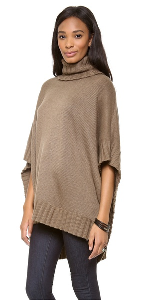 This Rachel Pally poncho gets a refined edge with a classic turtleneck. Ribbed edges. Asymmetrical hem.