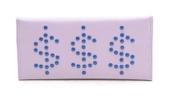 Metallic ‘Just Another Rich Kid’ lettering adds a tongue-in-cheek element to this slim trifold wallet. Lined interior with a zip pocket, 4 bill slots, and 10 card slots. Magnetic closure. Polishing wax included.