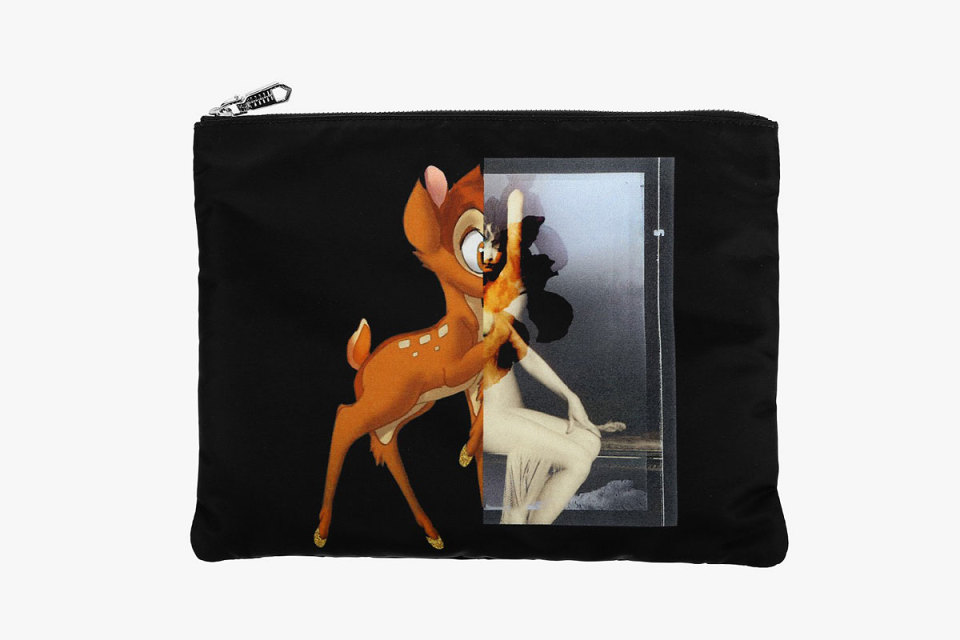 Givenchy released it’s unisex “Bambi” capsule collection, featuring their popular chopped and screwed Bambi graphic. The capsule includes a small clutch, book bag, and two t-shirts. Though a late start – perfect timing for the Holiday gift giving season.