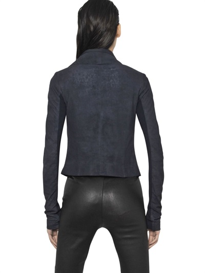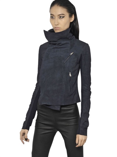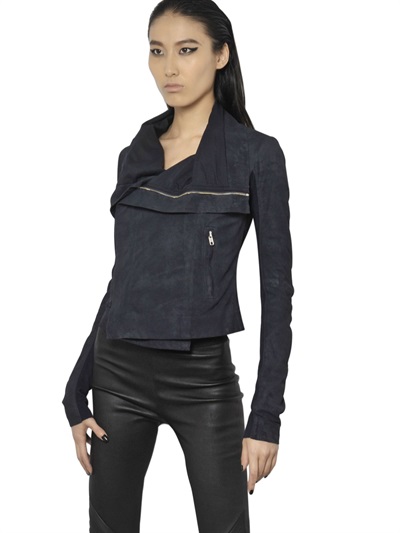 Check out this soft blistered leather biker jacket from Rick Owens.