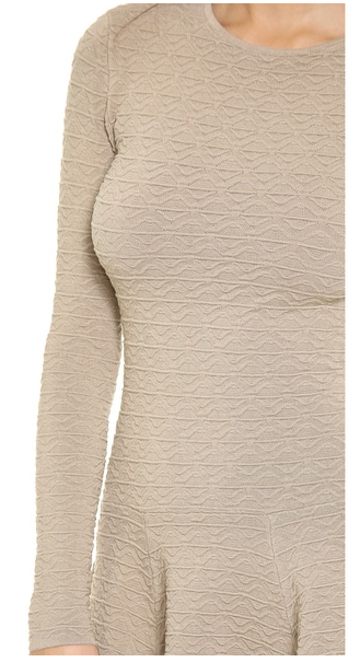 This Torn by Ronny Kobo dress cuts a playful fit-and-flare silhouette in soft, textured knit. Crew neckline. Long sleeves. Unlined.