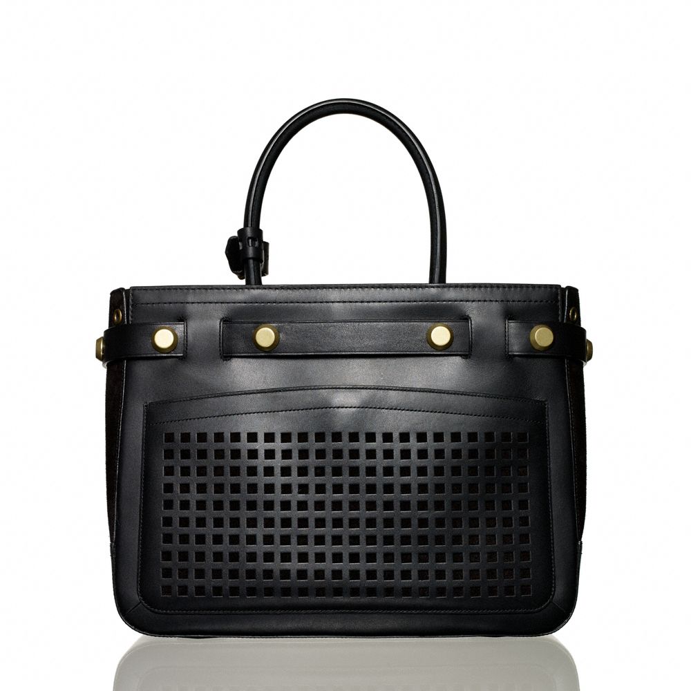 Burnished glovetan leather and suede. Bronze hardware. Front and back snap pocket. Interior back zip pocket and front split pocket. Twill fabric lining.